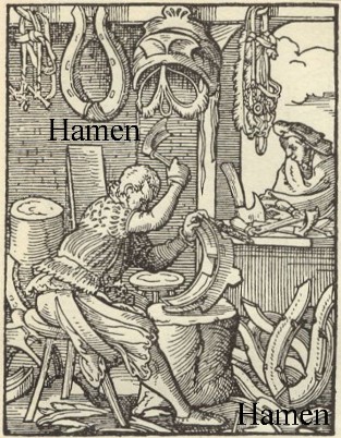 entwickelt. Ein Hamen oder auch Kummet ist die Bezeichnung für den gepolsterten Halsbügel für Zugtiere. Unsere Vorfahren verarbeiteten also Holz und Leder. Eine andere Berufsbezeichnung lautet: Sattler.